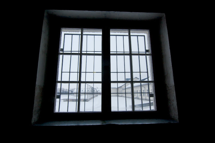 10am. With scores of tourists, we walked under the iron gate that says in German " Work set you free ". A vast, severe and austere compound lay before us, appropriately cheerless and foreboding. Covered totally in white snow, it is a reminder of the harsh condition where prisoners resided and meet their death there.