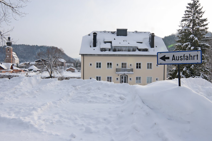 It was the coziest place ever visited, a god-send in the numbing -14C weather, wind chill not considered. Skiers were having their beer and watching a live skiing competition on TV while we almost enjoyed a full blown meal: We had the saltiest soup ever in Salzburg and Pat had meatloaf which looked suspiciously like luncheon meat. It was a happy one hour seeing the ice and snow billowing past the windows and playing with the tavern's resident dog, Jackie .