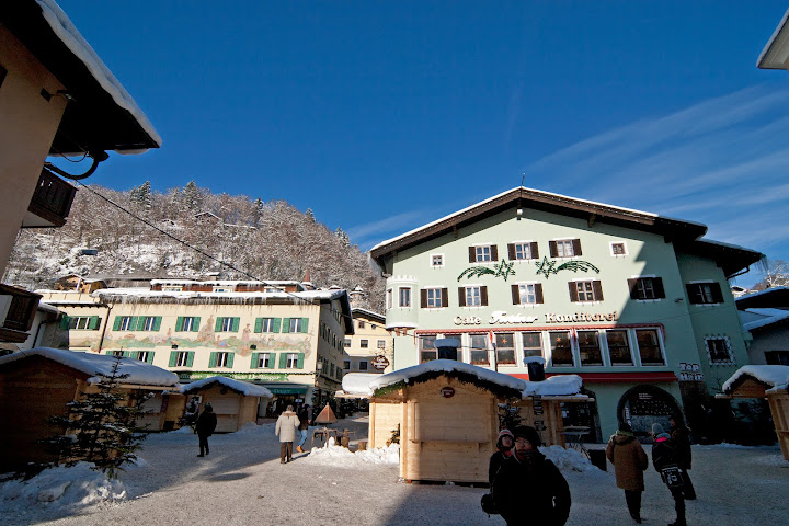 Our first stop was midway in the mountains to view the resort home of Hitler, famously known as Eagle's Nest, from afar. There was not much to see from where we were, the road being cut off from the snow. But what was most breathtaking was the snow covered peaks surrounding us in the shadowed alpine valley, with aquamarine blue skies as a giant backdrop.